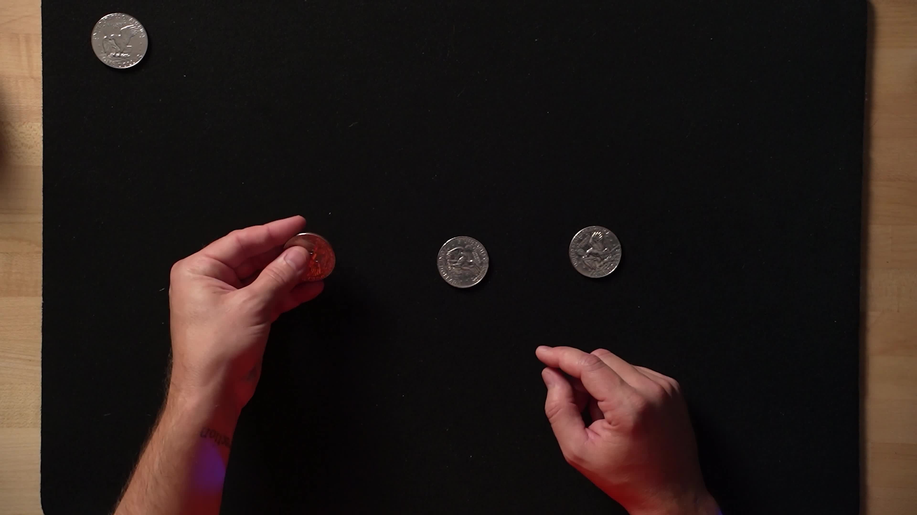 Vous commencerez par les bases du positionnement de l'empalme, en apprenant à tenir les pièces en sécurité sans crisper vos mains. Une fois à l'aise, nous passerons aux disparitions classiques comme le French Drop et le vol à la friction. Ces techniques sont le socle de la numismagia.