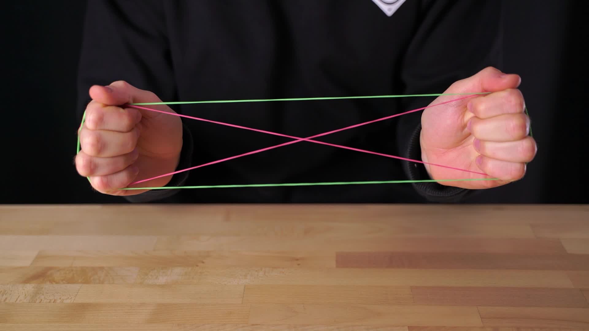 - 輪ゴムのリンク: 2色の異なる輪ゴムを、手や口を使ってリンクさせる方法。