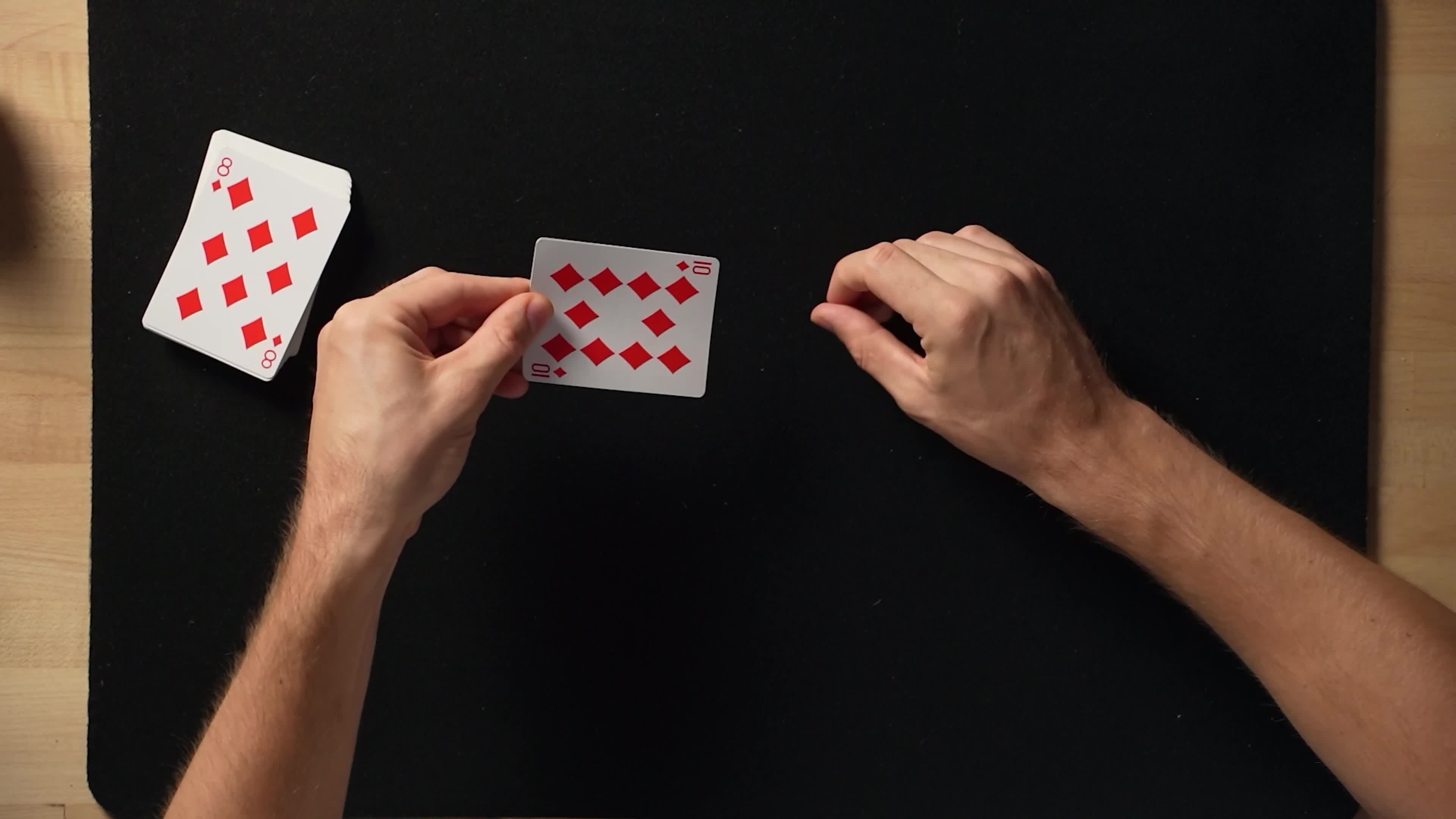 手のポジションとタイミングを正しく整えれば、マジックは魔法のようにエフォートレス(楽々)に見えます。ただ素早く動かすのではなく、「大きな動きで小さな動きをカバーする」方法を学びます。これにより、変化の瞬間がまるで現実の世界で起きたカメラトリックのように見えるのです。部屋の中で一番速く動く必要はありません。ただ、指をどこに置くべきかを知っていればいいのです。