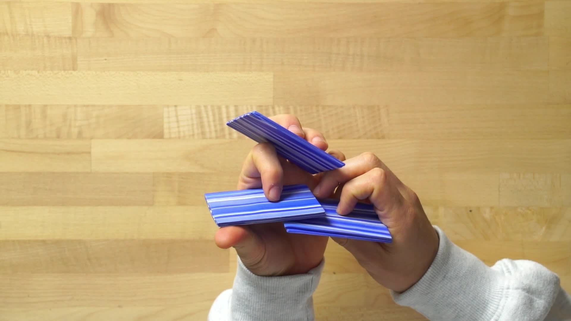 어떤 표준 카드 덱으로도 가능하지만, 새로 꺼낸 '미끄러운' 상태의 덱을 사용하면 이러한 플러리쉬를 훨씬 수월하게 연습할 수 있습니다.