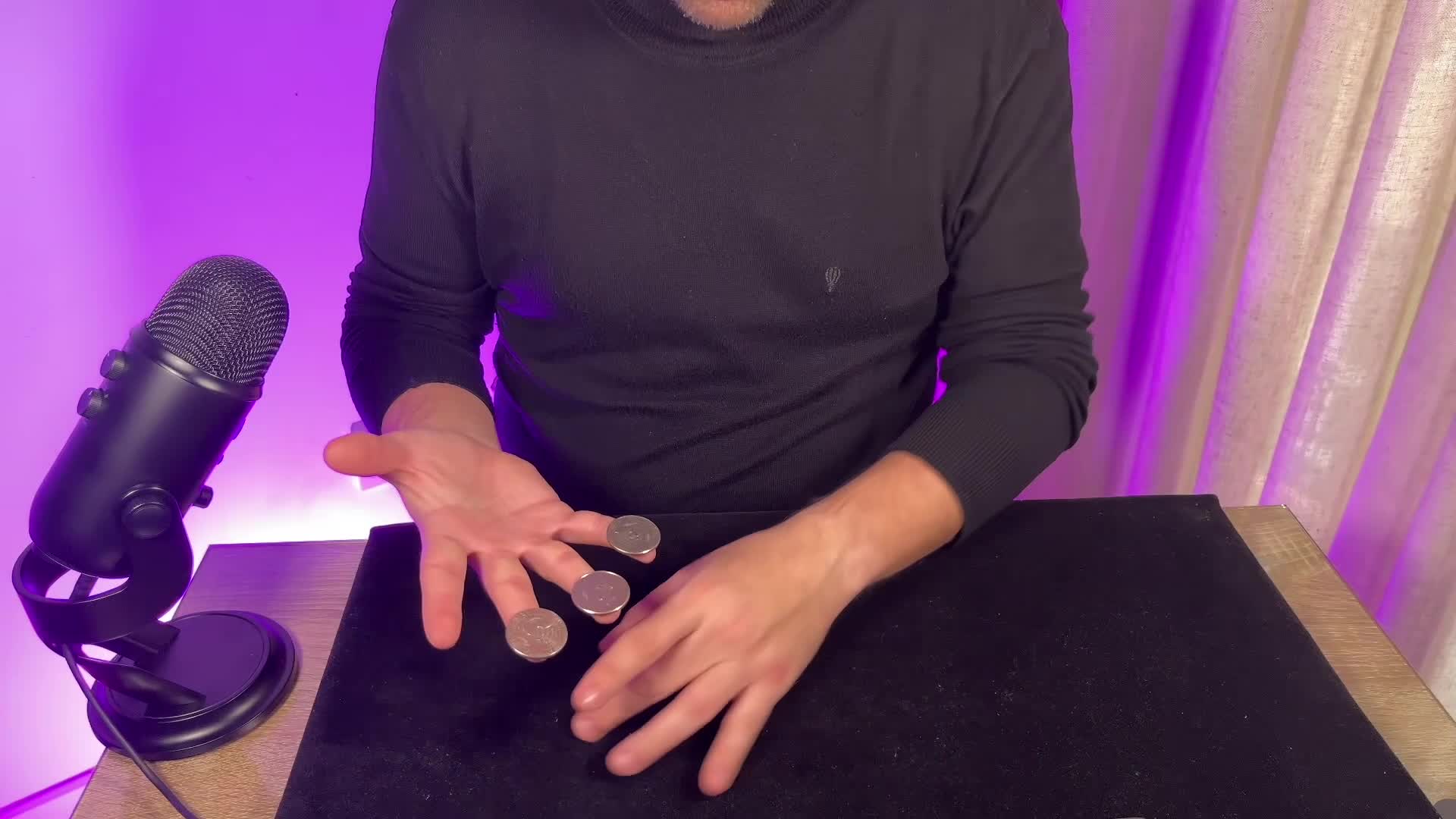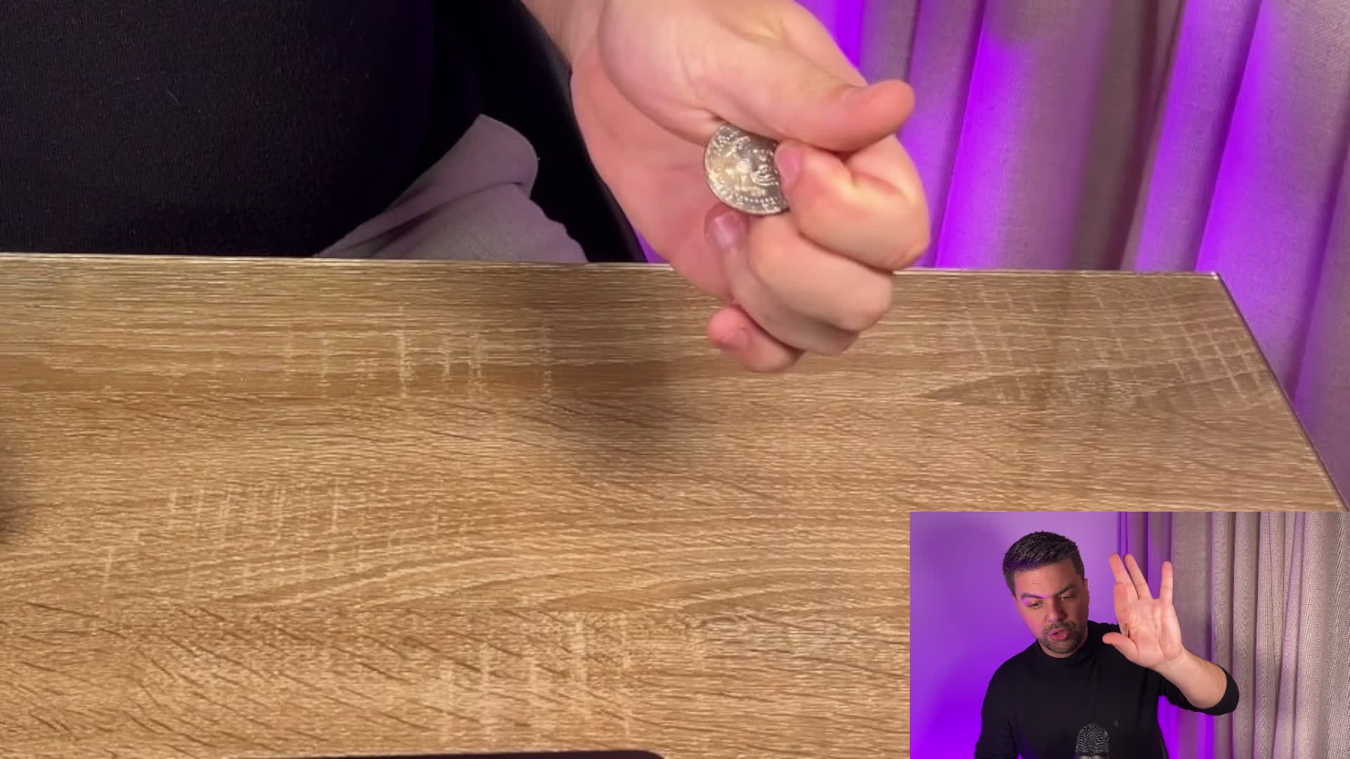 Gdy już będziesz wiedział, jak ukryć monetę, nauczysz się, jak ją „zgubić”. Będziesz ćwiczyć fałszywe odłożenia: techniki, w których udajesz, że kładziesz monetę do jednej ręki, potajemnie zatrzymując ją w drugiej. Jose nauczy Cię również korzystać z „expandowanej skorupki” (shell) – specjalnego gimmicku, który pozwala na dokonywanie cudów, takich jak przenikanie monet przez solidny blat stołu.