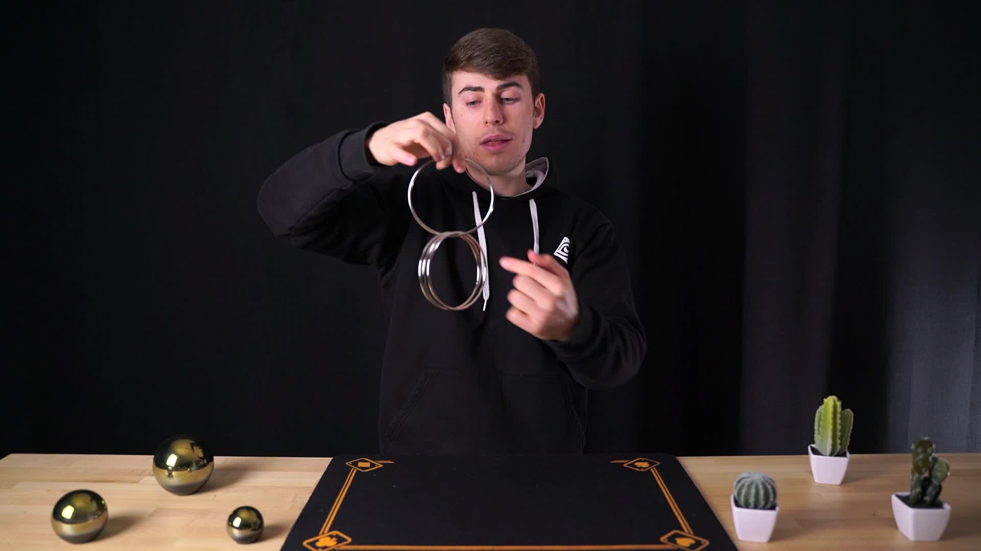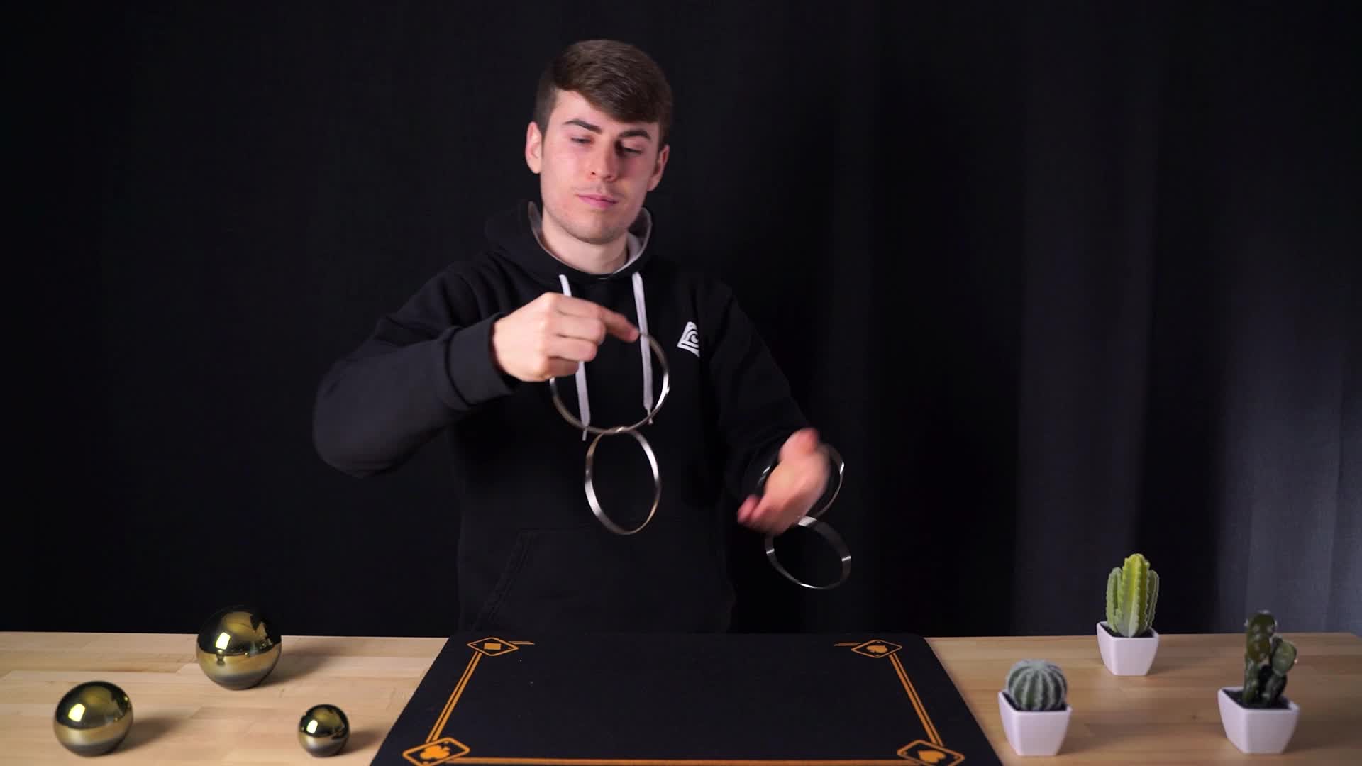 Aprenda uma rotina completa de close-up com quatro aros de metal, desde as pegadas básicas até técnicas avançadas como o link silencioso e o desencaixe na mesa.